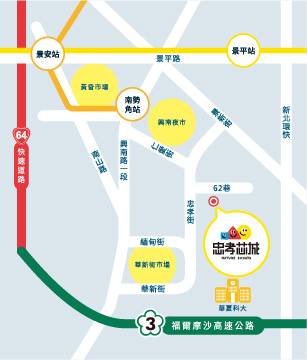 近享南洋觀光美食街、興南夜市等高人氣美食聚落; 跨橋走跳小碧潭京站、景美商圈、公館商圈; 回家轉身登上南勢角山,單車跨行陽光運動公園; 生活與森活,一邸全收錄!