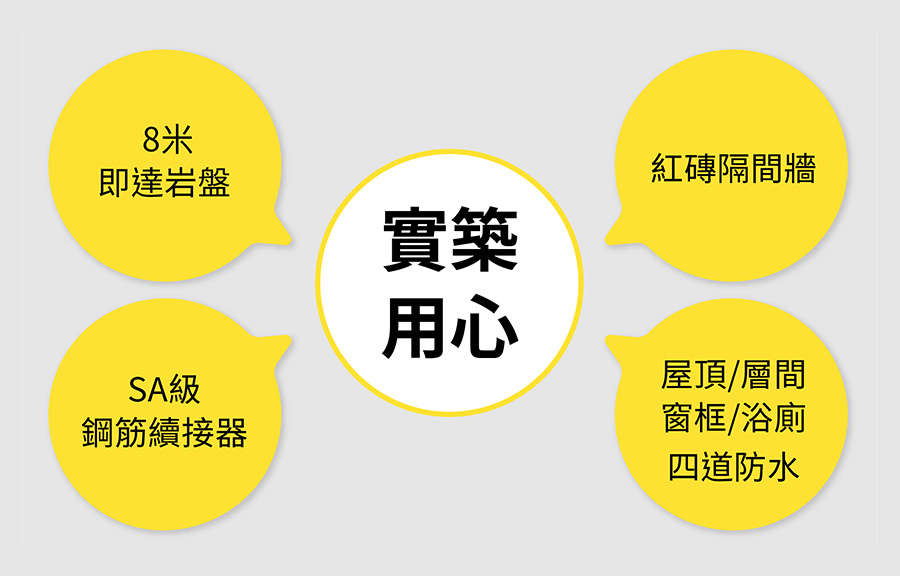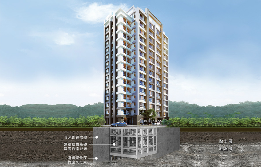 建築結構基礎8米即達岩盤, 連續壁最深約達18.5米, 整座建築物基座都穩固在岩盤上, 達到台灣建築法規防震要求。